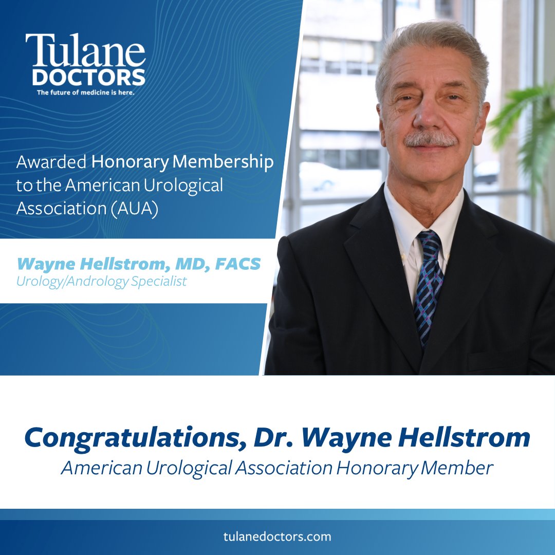 Congrats to Dr. Wayne Hellstrom, a specialist in #urology at #TulaneDoctors, for being awarded Honorary Membership to the American Urological Association (@AmerUrological) by its Board of Directors! This is a testament to Dr. Hellstrom’s incredible work in Urology and Men’s Health!